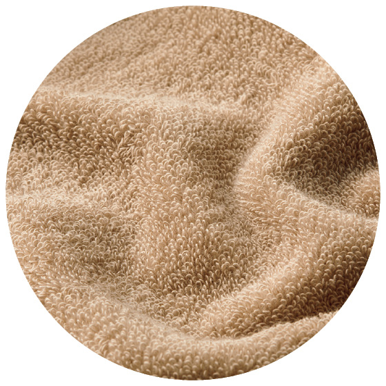 撚りの甘い特殊綿糸がやわらかさの秘密。長めのパイルが水分をしっかりキャッチ。