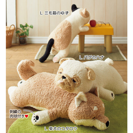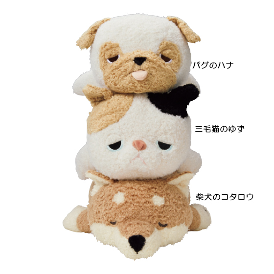 ●サイズ:柴犬のコタロウ=幅73×奥32×高18cm、三毛猫のゆず=幅69×奥28×高17cm、パグのハナ=幅67×奥28×高16cm