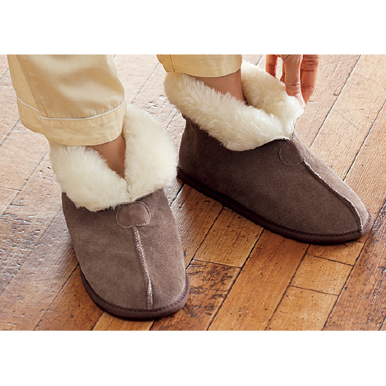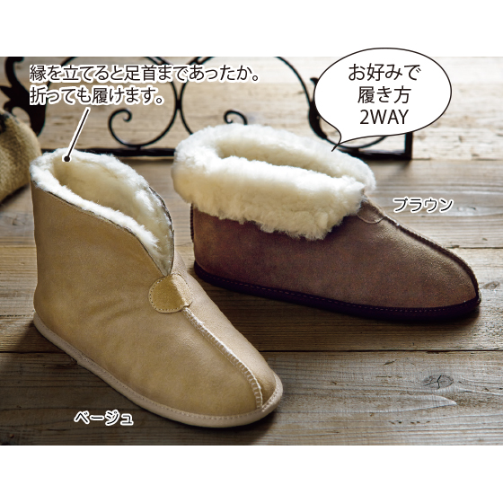 ●素材:表側=牛床革、内側=羊毛皮、底=発泡ゴム(すべりにくい加工)