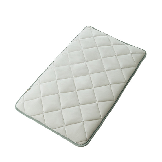 まるでおふとんみたいな、しっかりしたつくり。弾力のある固わた入り3層構造で、底付き感が少ない寝心地。キルト仕上げにして中わたがズレにくい工夫も。3ツ折りで収納できるのも◎。