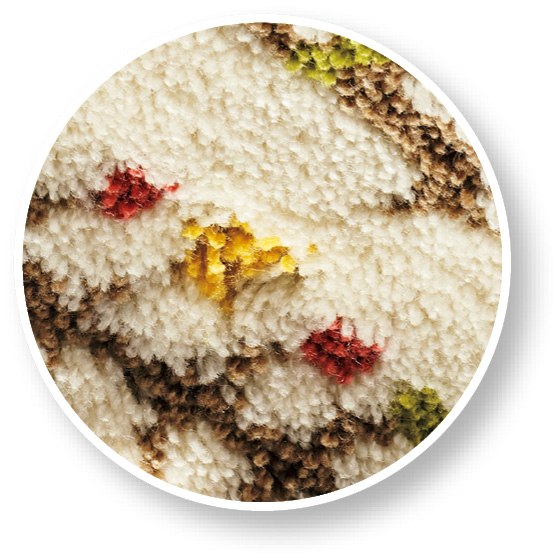日本製のウィルトン織でギャベ柄を表現。明るく楽しい雰囲気にイメージチェンジ!