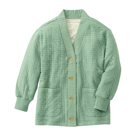 表も裏も綿100%で、ちくちくしにくい。中わたをサンドしているので、空気を多く含んであったかい。ソフトで軽く、リラックスタイムにぴったり。