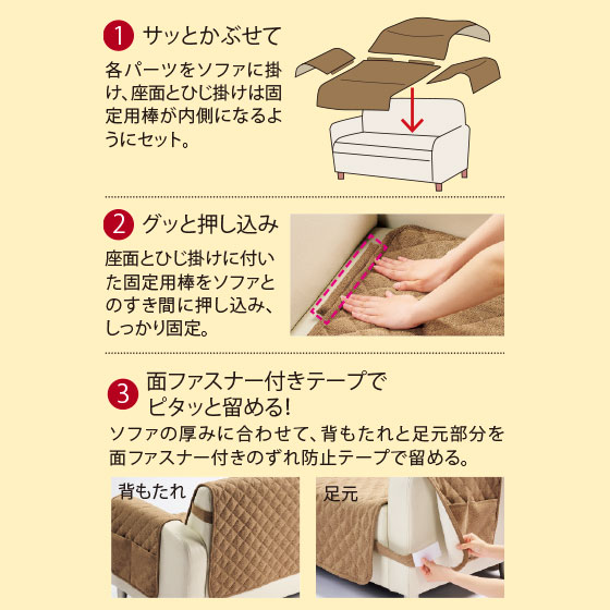 中掛けカバーのズレ問題を軽減。背面、座面、ひじ掛けをしっかり固定、取り付けも簡単!