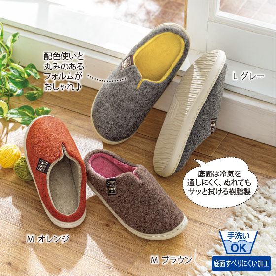 表地はフェルト、内側は短毛のマイクロファイバー使用で暖かい。