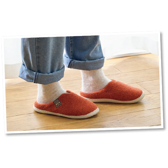 表地はフェルト、内側は短毛のマイクロファイバー使用で暖かい。