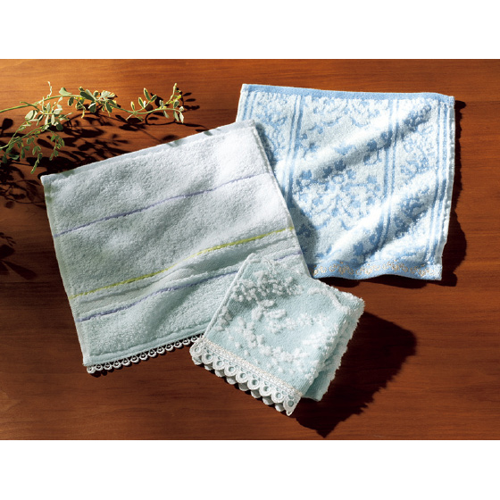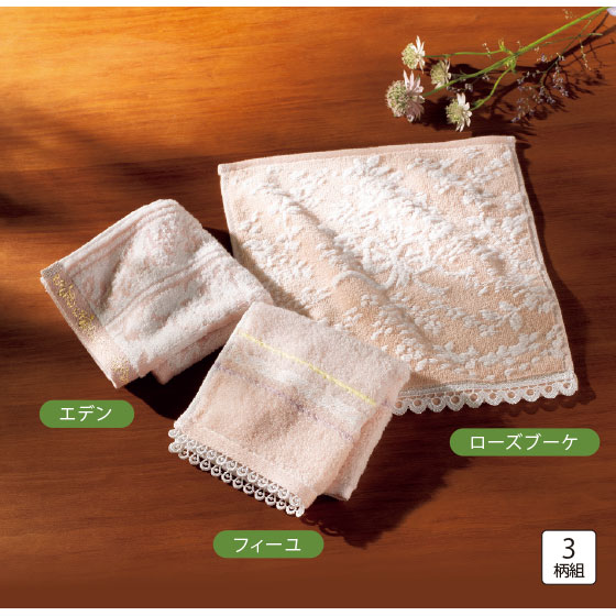 ●素材:フィーユ=綿100%、レース部分/ポリエステル100%、ローズブーケ=綿98%・ポリエステル1%・レーヨン1%、レース部分/ポリエステル100%、エデン=綿97%・レーヨン2%・ポリエステル1%