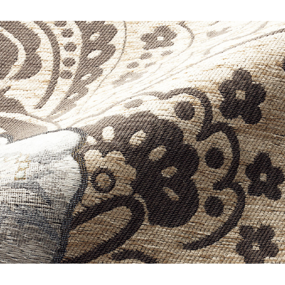 独特な織り目で描き出す大胆な花柄モチーフ、イタリア製ジャカード織。光沢感のあるやわらかな手触り。ほどよい厚みで一年中使えます。洗濯機で丸洗いでき、お手入れ簡単。