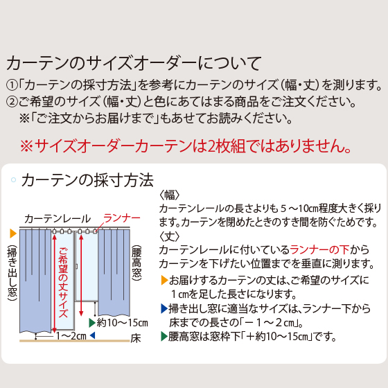 ご希望のサイズ(幅・丈)と色にあてはまる商品をご注文ください。