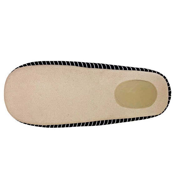かかと部分は、もしものときに立ち上げて履けるリブ素材。スエード調の底材で、パタパタ音がしにくい。