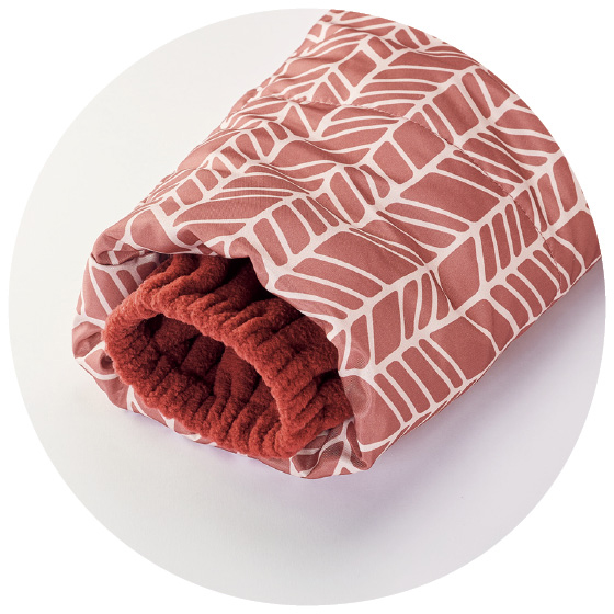 袖口はゴム入りのフリース仕様で、冷気が入りにくく手首までしっかり暖か。