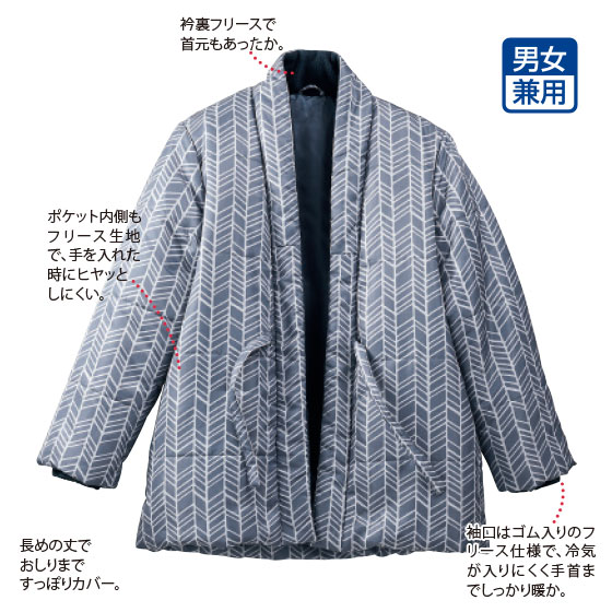 蓄熱わた入りでポカポカあったか。男女兼用のゆったりサイズ。