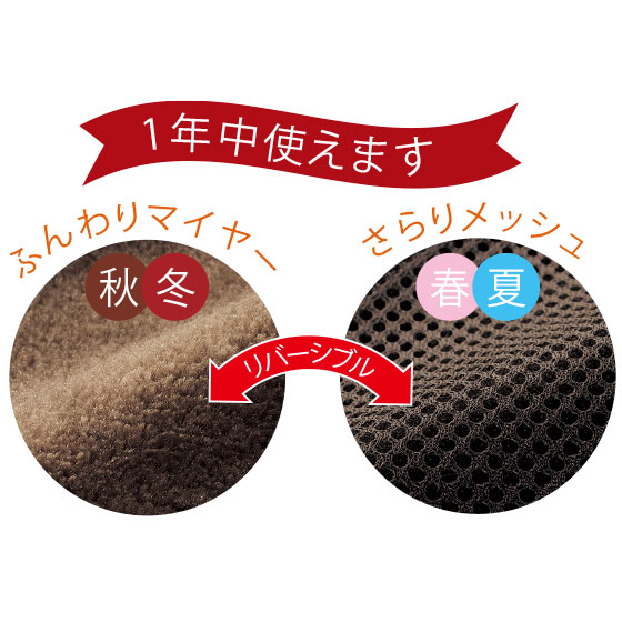 カバーは秋冬と春夏で使い分けできるリバーシブル仕様。オールシーズン快適に使えます。