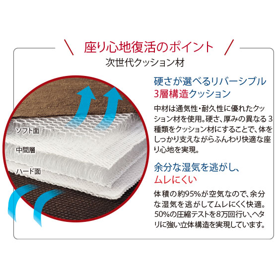1枚のせるだけで座り心地が復活!硬め・やわらかめが選べるリバーシブル。