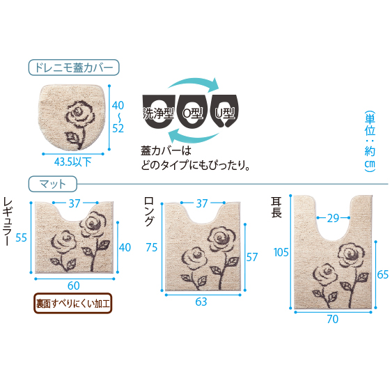 ●素材:ポリエステル65%・アクリル35%、マット裏面=EVA(すべりにくい加工)、蓋カバー裏面=吸着シート(アクリル樹脂)