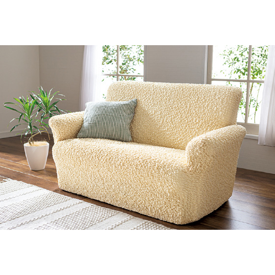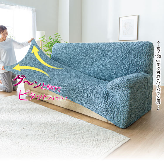 手触りの良いサラリとした綿混素材で、オールシーズンお使いいただけます。タテヨコに伸びるストレッチ素材だから、今あるソファにも合わせやすい。
