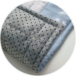 ●素材:綿85%・麻15%、額部分=ポリエステル100%、中材=ポリエステル100%、裏面=不織布張り(すべりにくい加工)