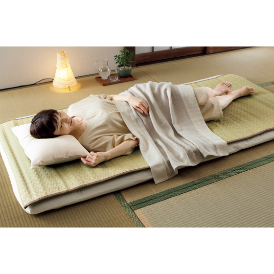 中材にもい草を入れ、通常の敷物の約4倍の量を使用。