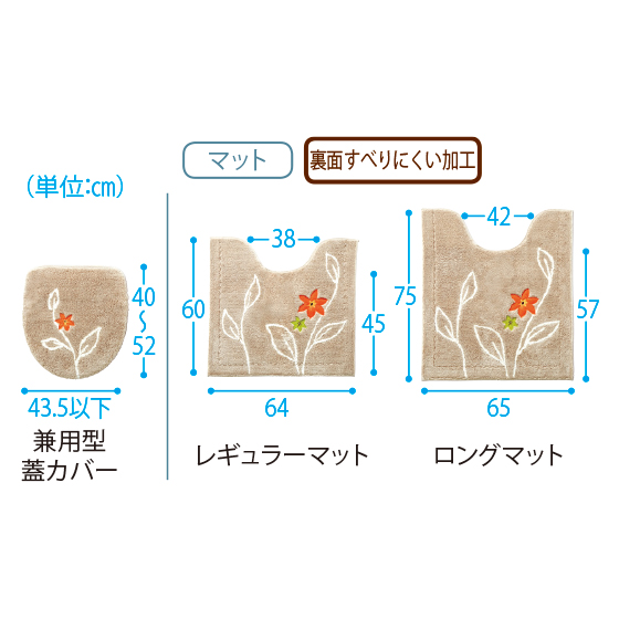 ●素材:マット/アクリル90%・綿10%、裏面=EVA樹脂(すべりにくい加工)、蓋カバー/アクリル95%・綿5%、吸着シート(アクリル樹脂)