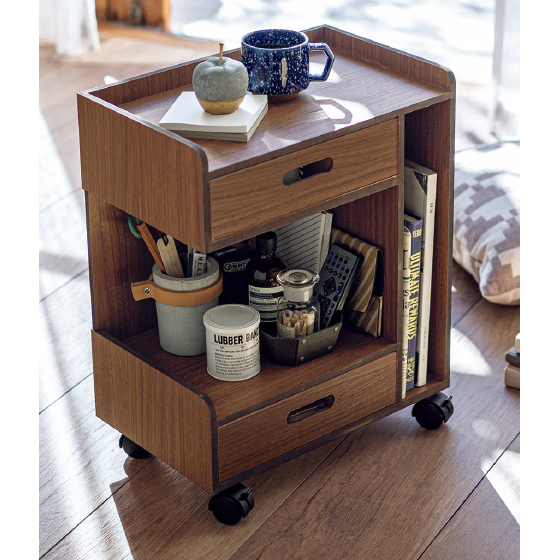 散らかりがちなリモコンやリビング小物、雑誌がすっきり。サイドテーブルとしても。