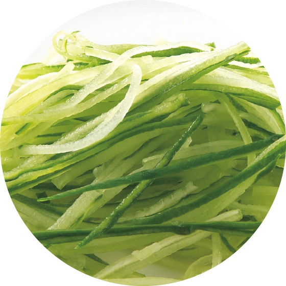 千切り・細切りのプレートは両方向に極薄刃が付いているので、包丁では難しい均一幅の千切りも簡単。