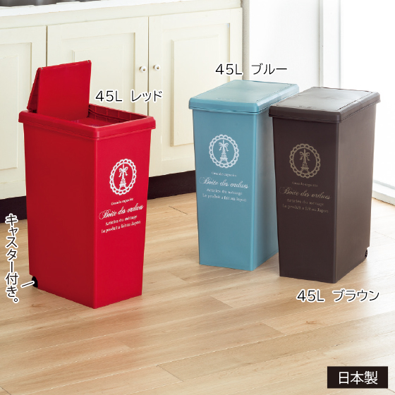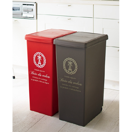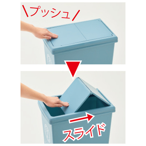 すっきりスリム&シックなカラーでインテリア性の高い本品。分別用にいくつか並べても生活感が出ないと好評です。スライド開閉だから、汚れやすい蓋の裏が見えない気配り設計です。