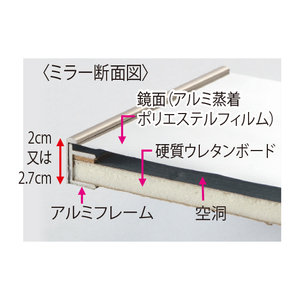 ●材質:鏡面=ポリエステルフィルム、芯材=硬質ウレタンボード、フレーム・飾り縁=アルミニウム、すべり止め=ゴム(45×120除く)