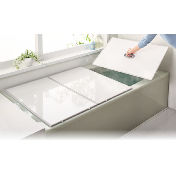 ちょっとお手入れをサボると、たちまちカビが目立ちはじめるお風呂場。それも掃除しにくい場所ほどカビやすいのだから、手に負えません。なかでも強敵は、やはり風呂蓋。洗剤にお金をかけ、むなしい労力を注ぎ込むのはもうやめて、本品に取り替えてみてはいかがでしょうか。フラットだから洗うのもササッと簡単で、とくにぬめりやすい縁は銀の抗菌力を生かした素材を使用。片側には小さな脚があり、立てたときの接地面積が少ないから乾きもスピーディです。取っ手をつかみひょいっと持てる軽さもうれしいポイント。