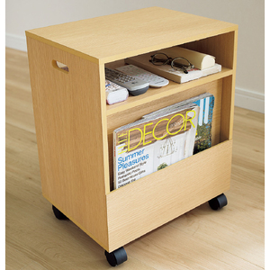小物が入るフリースペースも。背面には雑誌や新聞を立てて収納できます。