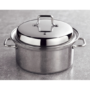 ●材質:上鍋・蓋・ハンドル・ツマミ=18−8ステンレス、下鍋=ステンレス鋼(クロム18%)(底厚0.8mm)