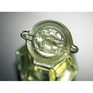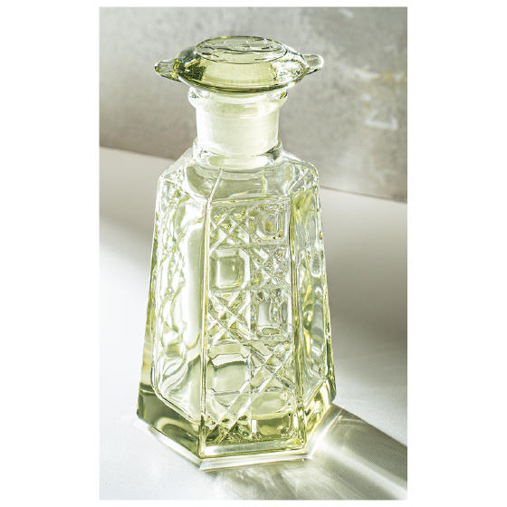 何十年も前のデザインをもとに復刻。ほんのり黄緑色の、昔のガラスを想わせる色合いの醤油差しに仕上げました。当時はネジ式だった口元を液ダレしにくいすり口にして、使いやすさもアップ。