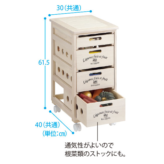 ●サイズ:幅30×奥40×高61.5(4段)・79(5段・ワゴン付き)cm