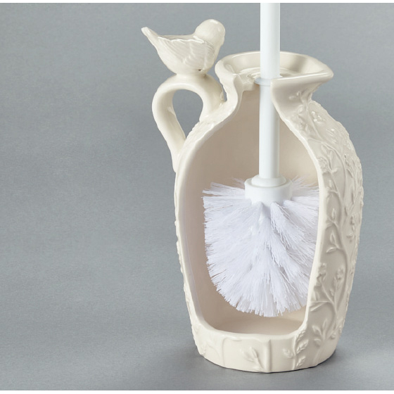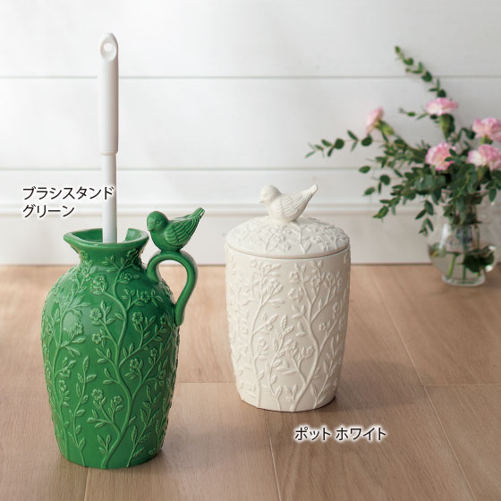 トイレブラシ付きで、出し入れも簡単。陶磁器製だからお手入れもラク。