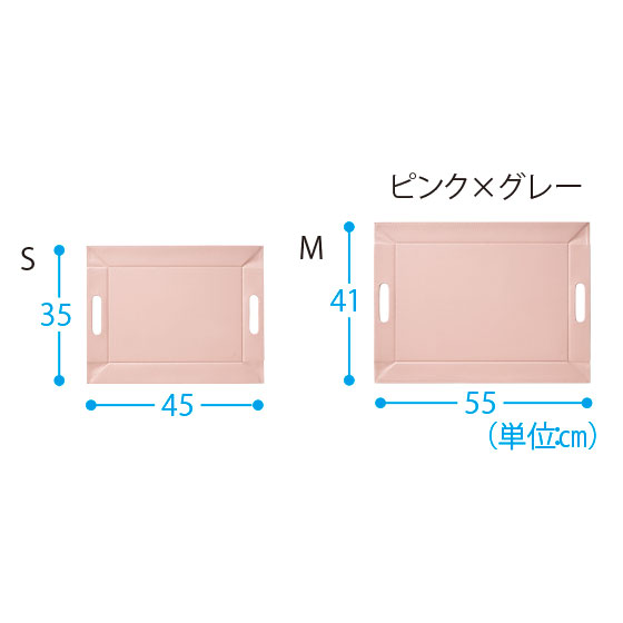 ●サイズ:S=幅45×奥35×高0.8cm(トレー使用時=幅34.5×奥24.5×高5.5cm)、M=幅55×奥41×高0.8cm(トレー使用時:幅44.5×奥30.5×高5.5cm)
