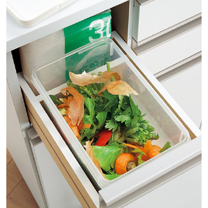 引き出しの内部には、生ごみ用容器付き。ごみ袋用スペースも。