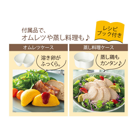 ●材質:本体=ポリプロピレン・ステンレス鋼・シリコン、ゆで卵ケース・オムレツケース・蒸し料理ケース=ポリプロピレン