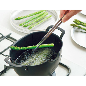 小ぶりながら深さがあり油ハネもガード!楕円形だから長めの食材もそのまま調理。