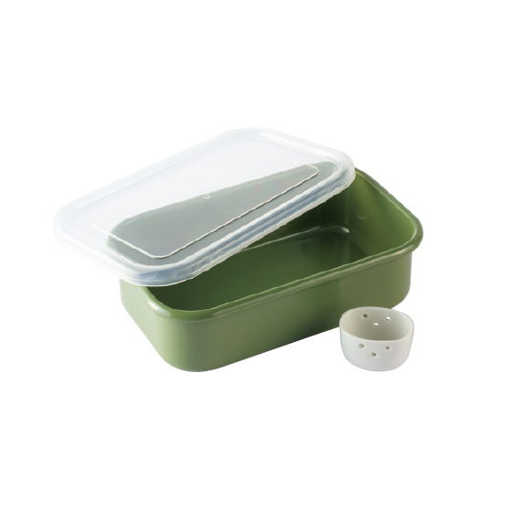 ●材質:ホーロー用鋼板(ホーロー加工)、シール蓋=EVA樹脂、水取り器=陶磁器