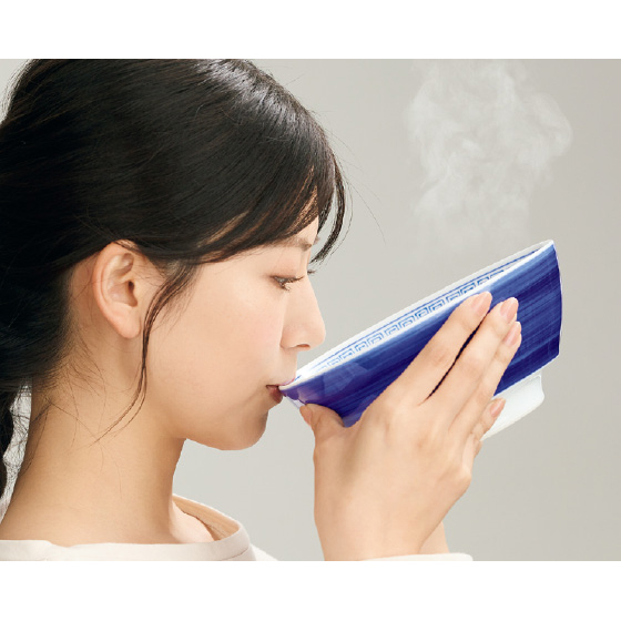 「家庭でラーメンを美味しく食べたい」という願いを叶えてくれる“究極”の名を冠するラーメン鉢です。一般的なラーメン鉢より少し小ぶりですが、具沢山のラーメンでもしっかり入り、扱いやすいサイズ。熱いラーメンを運ぶときや、鉢から直接スープを飲むときに実感できる、しっくりと手になじむフォルムです。この開発から製造までを手掛けたのは、400年以上の歴史を持つ「有田焼」の伝統を受け継ぐ窯元。“究極”というのも納得の逸品です。
