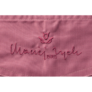 長さの調整ができるダブルボタン仕様。ポケット回りは丈夫なダブルステッチ仕上げ。