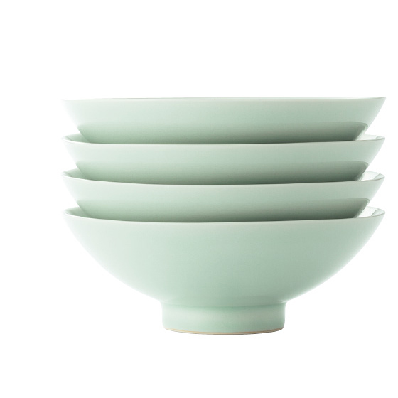 翡翠にたとえられ、古来茶人にも愛されてきた青磁を日常使いの器に。内底の釉溜まりの濃淡も趣ある表情。重ねて収納できます。