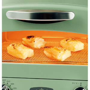●材質:本体=鋼板(粉体塗装)、取っ手=耐熱ABS(メッキ塗装)、つまみ=ABS・PC(メッキ塗装)、前脚=ABS・PC、後脚=耐熱PP、窓=耐熱ガラス、焼き網=線材(メッキ塗装)、受け皿=鋼板(ホーロー仕上げ)