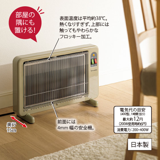 ●電気代の目安:1時間当り最大約12円(400型)・20円(660型)(200W時=6円・400W時=12円)