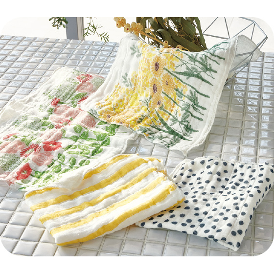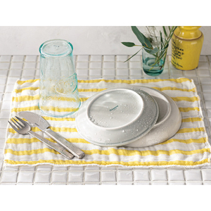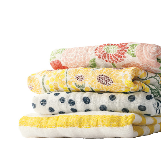 綿のかや織を5枚重ねて縫い合わせたふきん。