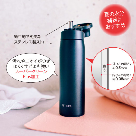 ●材質:本体=ステンレス鋼(SUS304)、中栓=ポリプロピレン(銀系抗菌剤入り)、パッキン=シリコーンゴム、ストロー=ステンレス鋼(SUS304)、底=ポリプロピレン