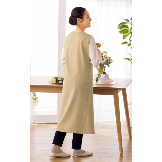 自然なシワ感が魅力の綿100%素材。ボタンを開けて、ジレ風に着こなしても。