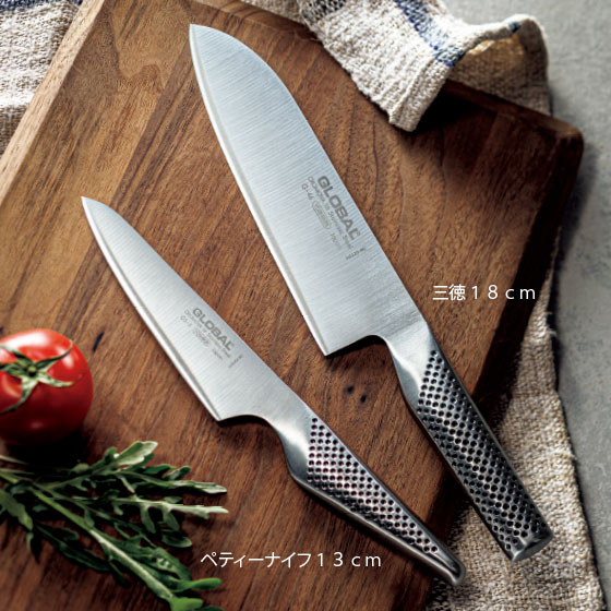 ●重量:ペティーナイフ13cm=110g、三徳18cm=175g、シャープナー=65g