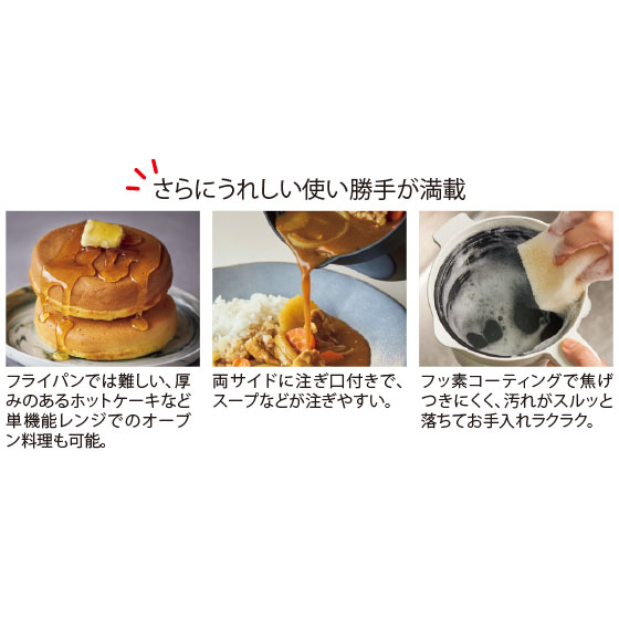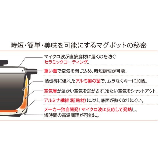 ●材質:本体=SPS(シンジオタクチックポリスチレン)・アルミニウム(本体内面:フッ素樹脂塗膜加工)・アルミナ繊維・マイカ・セラミック・シリコーン、蓋=アルミメッキ鋼板・SPS(シンジオタクチックポリスチレン)