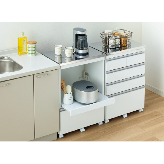 お手入れや水や熱に強く、熱いお鍋をちょい置きできます。また、家電も設置可能。