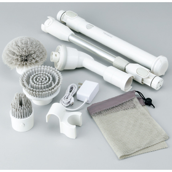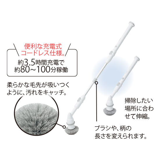 ●材質:ハンドル・回転ヘッド=ABS、伸縮ポール=アルミ、ブラシ=PBT
