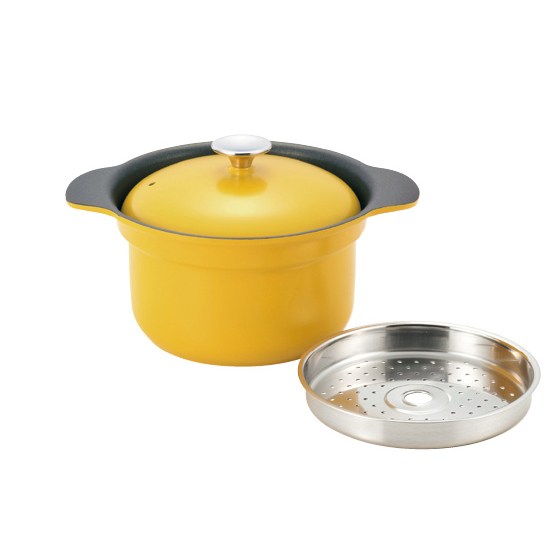 ●材質:本体・蓋=アルミニウム合金(内面/フッ素樹脂加工・外面/焼付塗装)、スチームプレート・ツマミ=ステンレス鋼